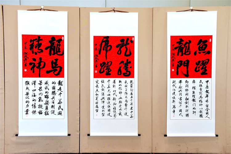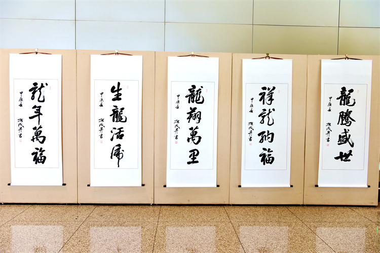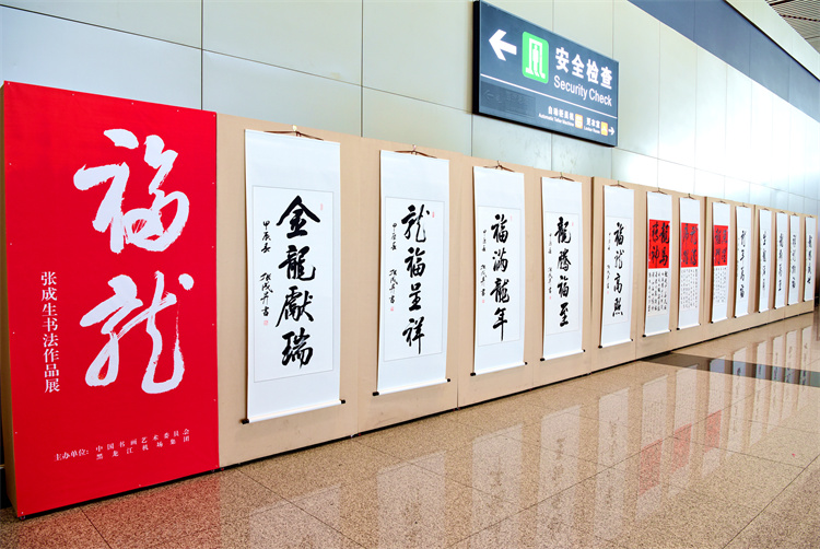 金龙献瑞,龙福呈祥。3月11日,甲辰年二月初二,张成生“福龙”书法作品展在哈尔滨太平国际机场举办。