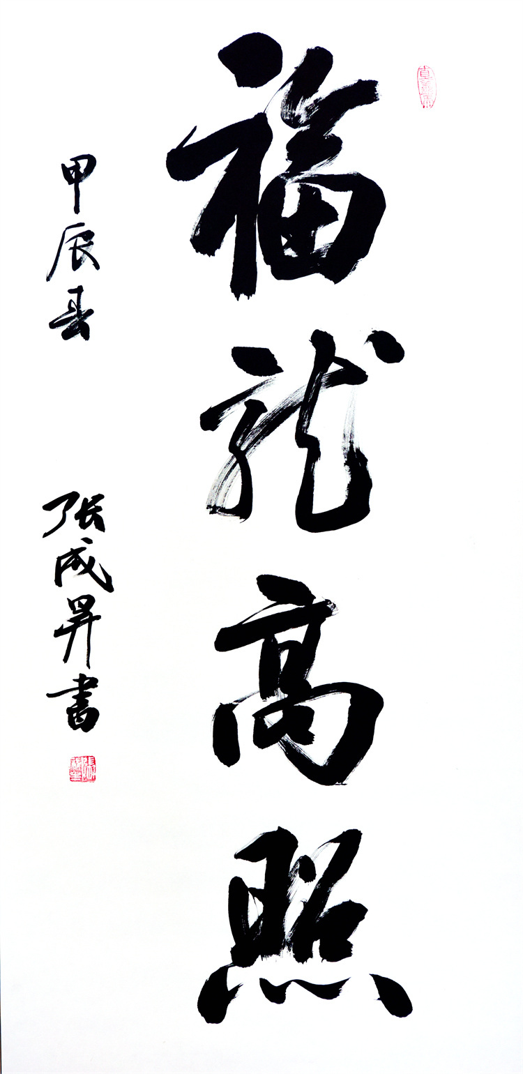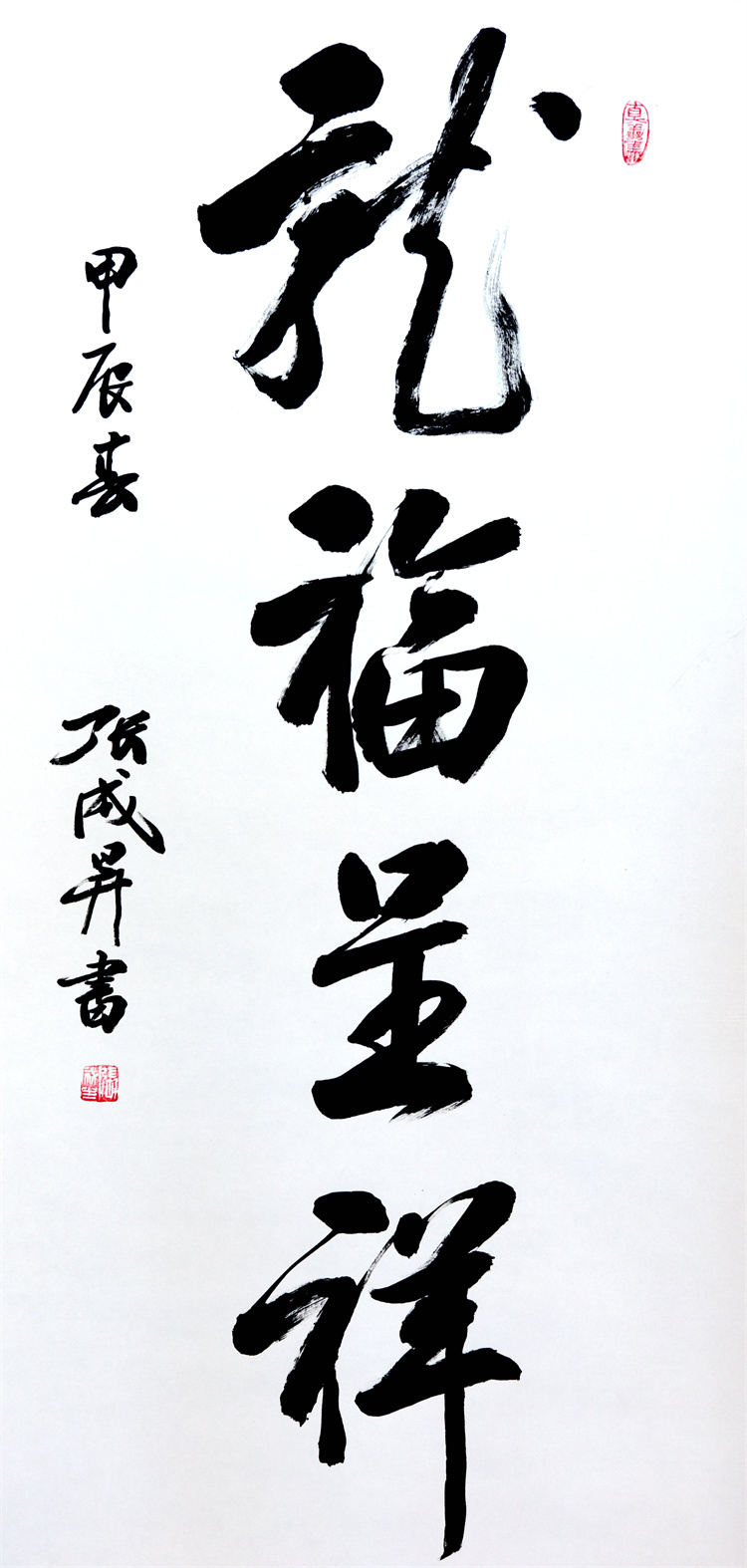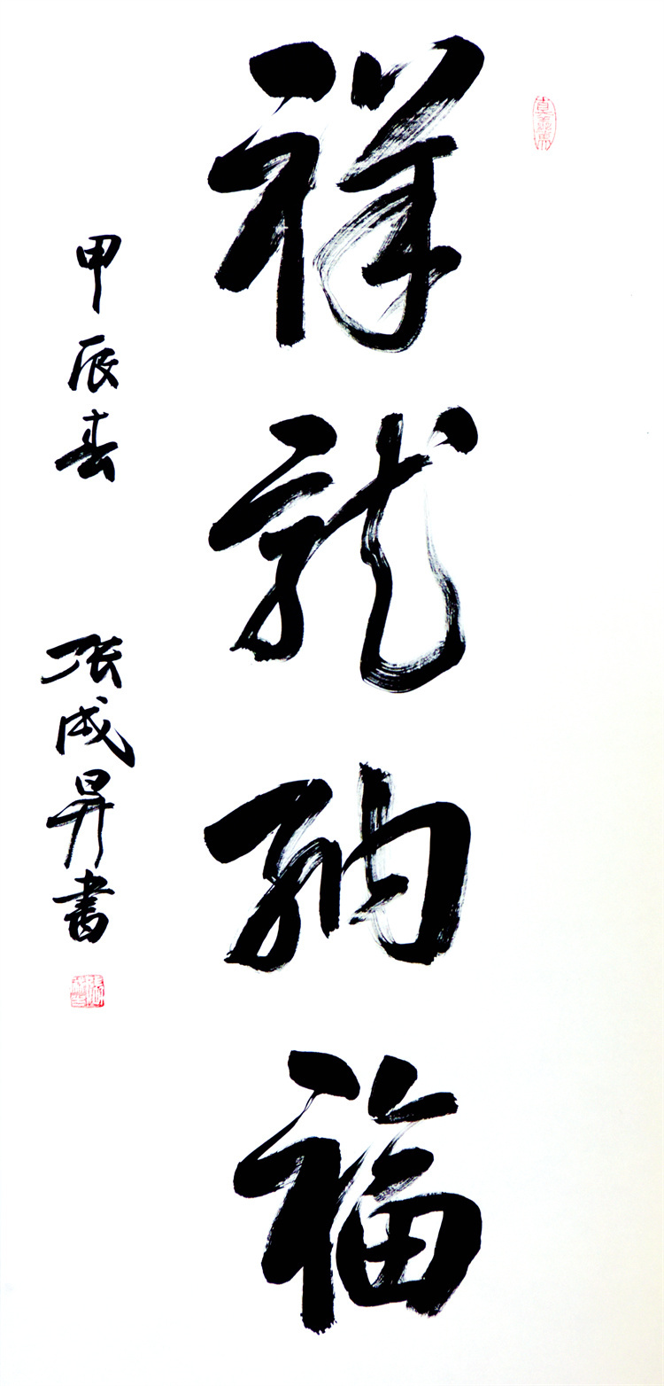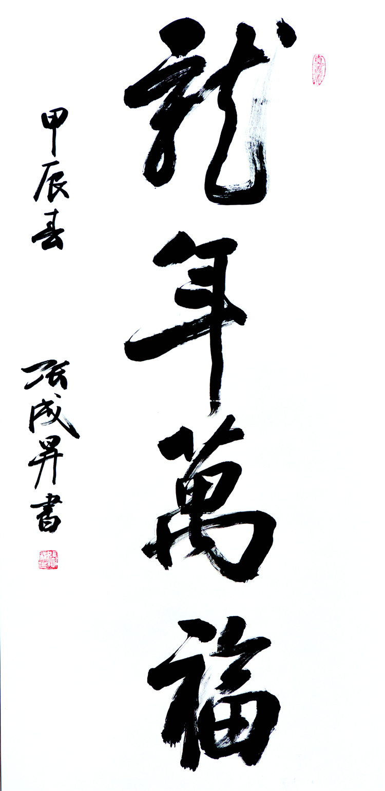 龙行龘龘,龙年书龙。龙在中国有着特殊的含义,龙是中国的象征,是中华文化的象征。甲辰龙年,作者张成生以“福龙”为主题,精心创作并展出“龙马精神、龙腾虎跃、鱼跃龙门”和“福龙高照、生龙活虎、龙腾盛世”等大、中、小幅书法作品近20幅,其创意新颖独特,主题鲜明,寓意深刻,字体多变,气象万千,体现了作者的笔墨情怀和书家修为。