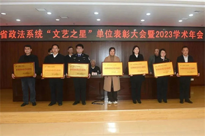 3月31日,全省政法系统“文艺之星”单位表彰大会暨2023年学术年会在省高级人民法院华苑会议中心隆重举行。中共湖南省委原常委、政法委原书记、省 政协原副主席李贻衡、省人民检察院原检察长张树海、省文联党组书记、主席夏义生、省高级人民法院党组副书记、副院长邬文生、省委政法委副书记王学武、省高级人民法院党组成员、政治部主任李知文出席大会,并为受到表彰的长沙市开福区委政法委等22个2022年度全省政法系统“文艺之星”单位颁发奖牌。