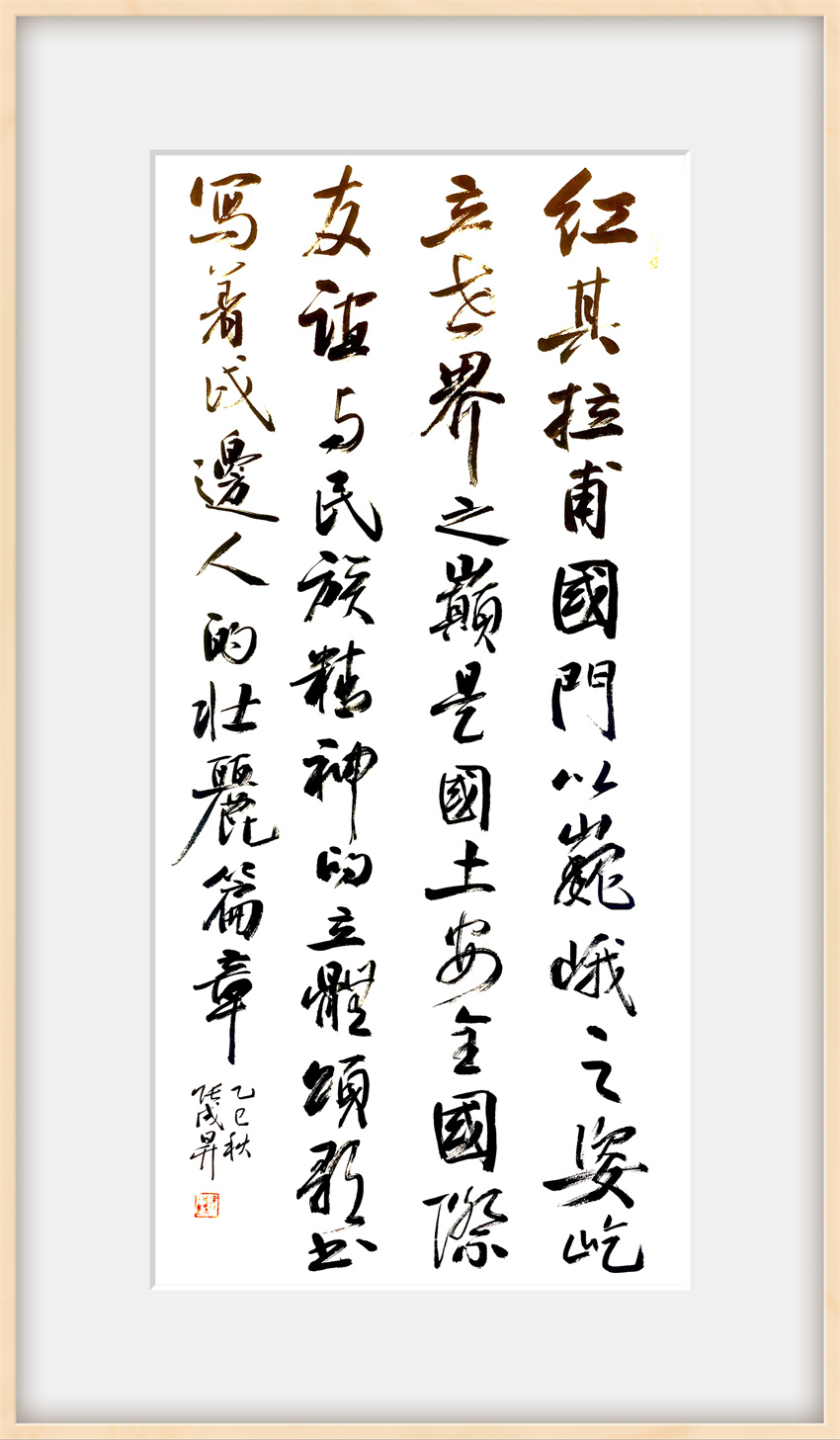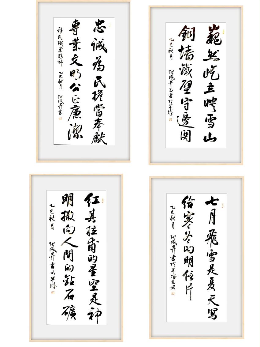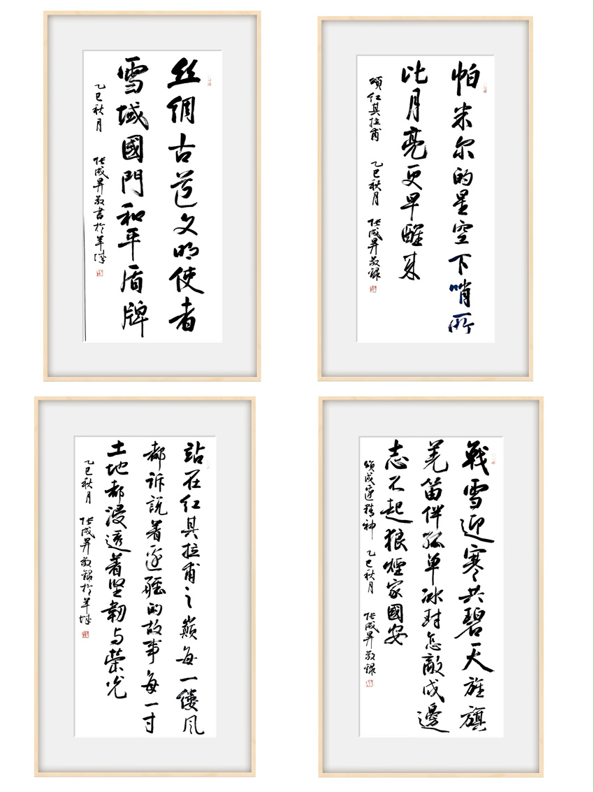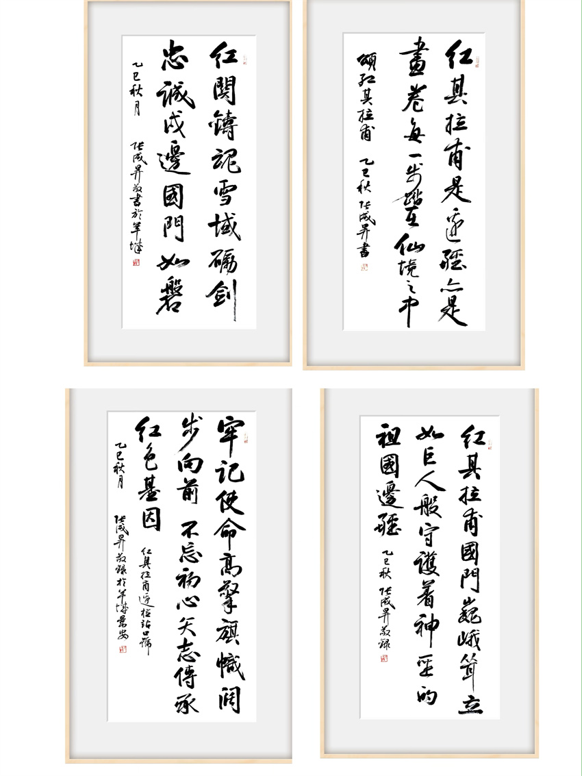 本次展出的近40幅书法作品,以“红色国门”为魂、以“边检精神”为骨,将边防民警的坚守、国门的庄严与节日的欢庆凝练于尺素之间。笔墨流转中,映照出红色国门的峥嵘岁月;字句铿锵间,激荡着新时代的奋进强音。每一位驻足观赏的观众,都能在淡淡的墨香中读懂红其拉甫的赤子之心,触摸到“红色国门”背后炽热的精神脉搏。