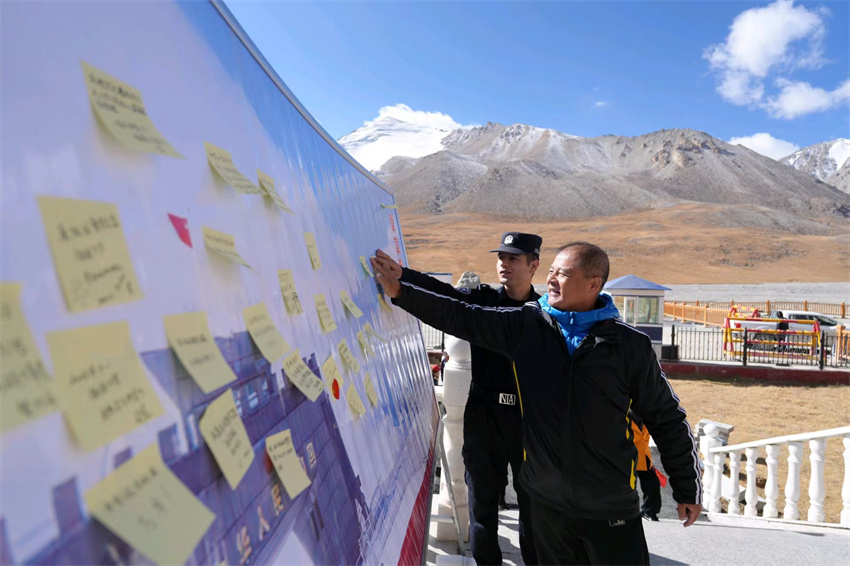 一位来自陕西的游客许先生感慨道:“这些作品充满了力量,我们能从中读到作者对这片土地深沉的爱。”深圳的大学生游客杨同学激动地分享:“这个国庆,我来到红色国门,在离天空最近的地方,一边欣赏这些苍劲有力的书法,一边感悟红色精神,内心深受震撼!”他在留言簿上郑重写下:“何其有幸,生于华夏。愿以吾辈之青春,捍卫盛世之中华!”据主办方介绍,此次书法展既是一位边防老战士对红色国门的深情礼赞,也是一堂行走的红色党课,更是一次跨越山河的精神传递,让红色正能量在翰墨飘香中浸润人心,使“天际雄关”的崇高信仰在祖国的欢庆歌声中绵延传承。