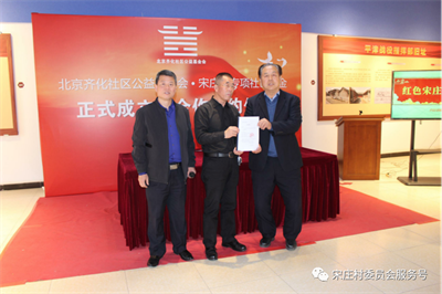 其四,红色文化宣讲联盟。落地北京一路畅通广告传媒有限公司“红色追光会客厅”宋庄站,同时联合中国文物交流中心旗下国文策(北京)文化发展有限公司将进行红色文化访谈及宣讲、红色文物搜集红色艺术品创新等系列活动,增强宋庄村红色文化传播力,并将宋庄村发展为红色文化创新的关键连接点。北京东方视辉影视传媒有限公司董事长、宋庄村村民张少军及中国作家协会会员、著名编剧刘俊杰共同向基金捐赠了根据宋庄村革命烈士王九仲事迹改编的舞台剧剧本《红色宋庄》。