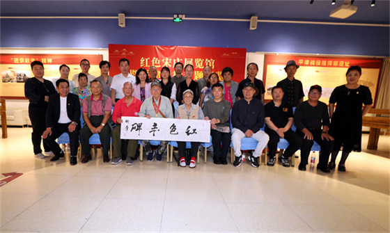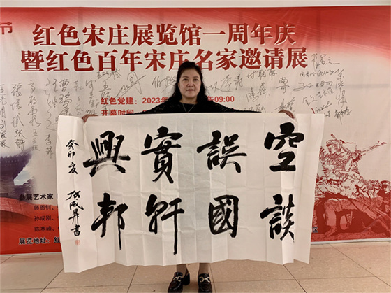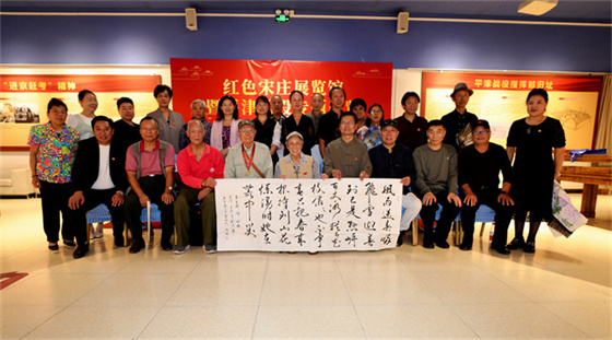 中建二局高级工程师、中国书画收藏网评委、香港美术家协会会员、北京通州书法协会会员、红色文化传播者、北京助残爱心公益促进会党支部书记朱广明书记(前排左一)为座谈会创作的书法作品。