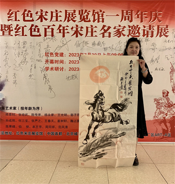 中国书画家协会会员、国宾礼艺术家、香港美术家协会会员、北京市顺义区书画家协会会员尹凤(前排左一)老师为座谈会创作的绘画作品。