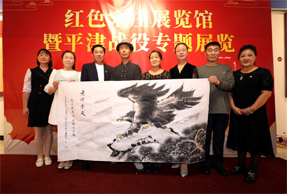 中国国典书画院会员,中国书画艺术研究教育研究院会员,中国名人美术家协会副会长 ,辽宁省美术家协会会员张鸿光(左四)老师为座谈会创作的绘画作品。