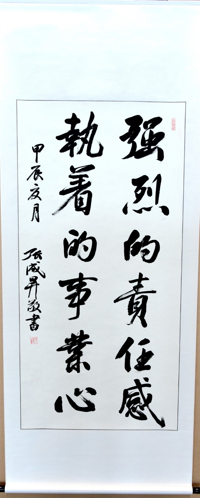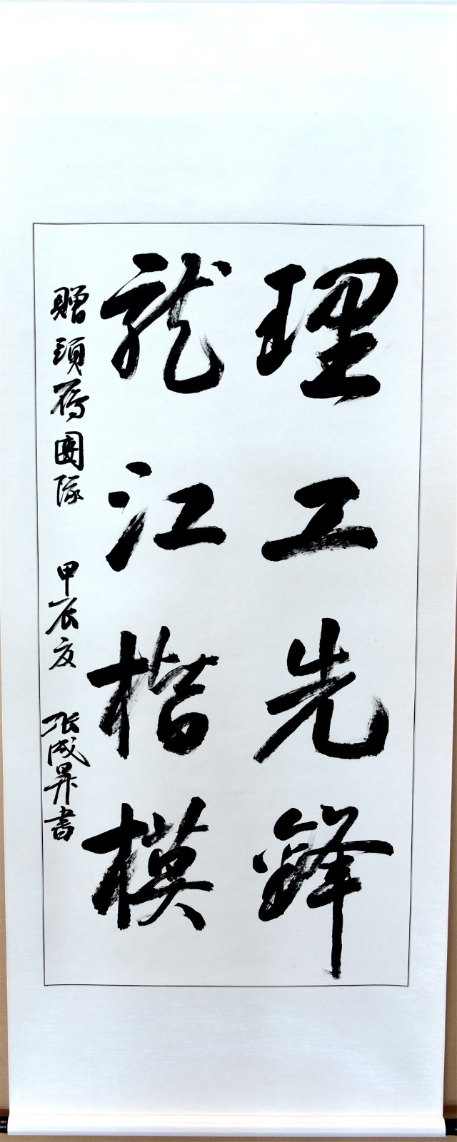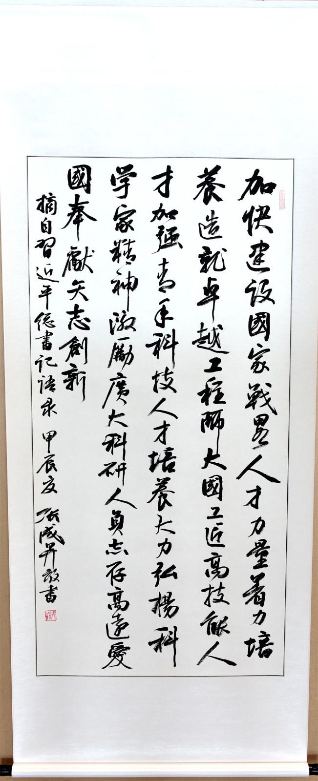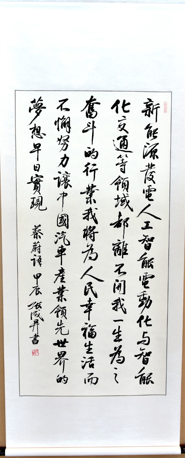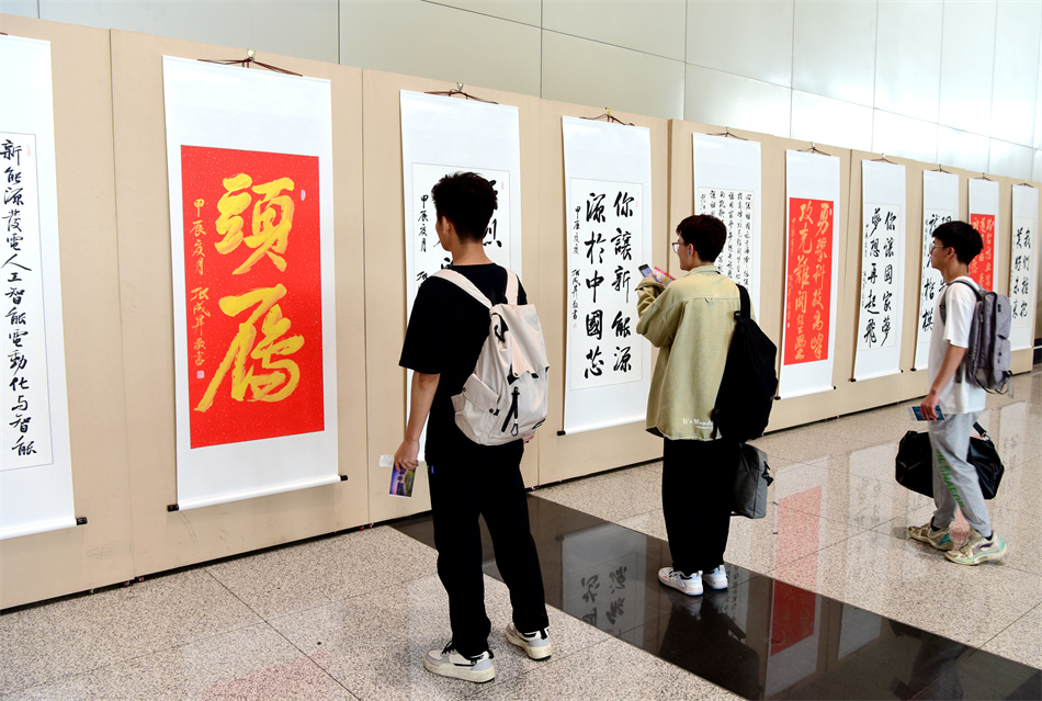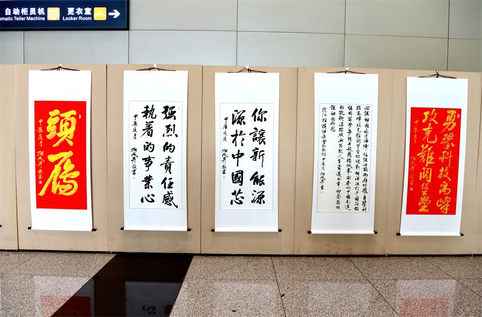 此次展览为期30天,旨在以书法为载体,弘扬楷模精神,汇聚奋进力量,学习宣传“新能源”头雁计划团队带头人蔡蔚等龙江楷模锐意进取、勇攀高峰的拼搏精神和深怀爱国之心、砥砺报国之志、为国争光的爱国精神。共展出“志存高远,爱国奉献,矢志创新”“勇攀科技高峰,攻克难关堡垒”“强烈责任感,执着事业心”“理工先锋,龙江楷模”等大中小幅行楷书法作品20余幅。作品清新飘逸,规整流畅,笔墨凝练淡雅,尽显风神筋骨,章法结构严谨,书风大气豪迈,极具艺术性和观赏性,鼓舞人心,令人振奋。