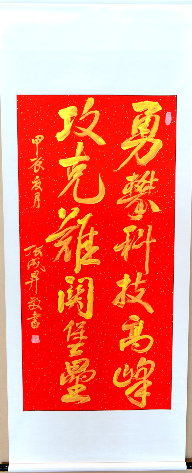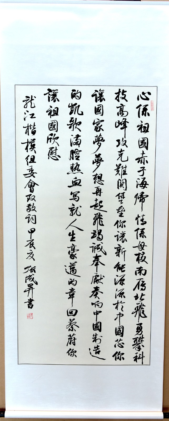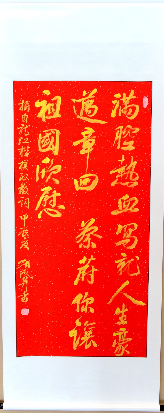 张成生是中国书法家协会会员,中国书画艺术委员会副秘书长,多年来一直致力于用书法作品赞颂新时代、弘扬主旋律、传播正能量,先后在北京、重庆、广东、黑龙江等多地举办个人书法展览90余次,创作红色书法作品8000余幅60余万字,1992年曾获国际书画博览会一等奖。