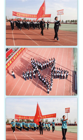 国旗庄严 鲜花绚烂 方阵如潮 步伐铿锵 双语学子 以青春之姿 踏出时代节奏 用整齐队列 演绎集体力量 旗帜方阵 气宇轩昂 徽标方阵 创意十足 花束方阵 绚丽如虹 彩旗方阵 斑斓似锦 裁判员方阵 持公正之尺 志愿者方阵 捧赤诚之心 ...... 年级方阵竞展风华 高一星辉熠熠映初心 高二锋芒毕露傲群芳 高三执笔“985”绘宏图 同心共谱凌云之志 朝阳下 升国旗 全体双语人奏唱国歌 共同见证高中部 第七届秋季田径运动会华彩启航 高中部王淑峰主任致开幕词 裁判员代表马明宇老师宣誓 运动员代表崔振涛同学宣誓 双语学子 豪情激荡 “歼16D战机” 呼啸启程 人形倒计时定格八十载峥嵘 军体拳《雄风》 展钢铁意志 啦啦操《幸运逐光》 绘青春锦绣 武术表演《太极韵道》 显东方神韵 歌伴舞《美丽中国》 田甜老师携手学生 徜徉幸福花海 “长城永固 梦想启航”方阵 灵动演绎长城雄姿与升旗盛景 穿越1945-2025的时空长廊 以青春之姿谱写民族复兴的史诗 校长张连喜激情宣布 “忻州现代双语学校高中部 第七届秋季田径运动会 开幕!” 气球飞扬 彩烟腾空 掌声如潮 赛场:拼搏与团结的交响曲
