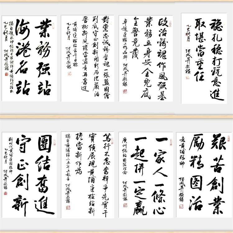 本次展览汇集了邓书山、张成生等多位退休老干部及特邀警察大学篆刻家鲍守华先生的50余幅精心之作,涵盖书法、篆刻、摄影等多种艺术形式。老同志们虽已功成身退,却始终心系边检,情牵事业发展。他们以书画言志,以镜头寄情,将数十年的职业感悟、不变初心与艺术才情熔于一炉,为全站民警职工奉献了一场底蕴深厚、情感真挚的文化盛宴。他们笔走龙蛇,书写铮铮誓言。 展出的书法作品,或苍劲雄浑,或行云流水。字里行间,既有“对党忠诚、服务人民”的坚定信念,亦有“执法公正、纪律严明”的职业操守,更有对黄埔边检站的深厚情谊与美好祝福跃然纸上。他们墨彩丹青,描绘时代画卷。 在一幅幅书画作品中,恢弘的国门景象、温馨的服务瞬间、寓意深远的写意山水跃然眼前。他们以画笔勾勒口岸变迁与发展脉络,艺术地再现了黄埔边检站75年来的奋斗足迹,抒发了对移民管理事业最真挚的热爱。他们用光影定格,铭记永恒瞬间。 从黑白到彩色,从简陋旧台到智能口岸,一张张老照片是历史的忠实见证,记录着创业的艰辛与成长的喜悦;一帧帧新影像则是发展的生动缩影,展现了今日边检工作的科技化、规范化与人性化。这些定格的瞬间,是历代黄埔边检人精神风貌最真实的写照。