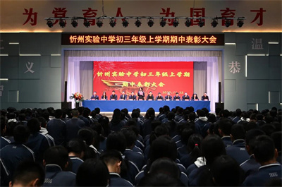 子衿当勤勉,韶华不可轻。优异的成绩,既承载着实验学子朝乾夕惕的执着,也凝结着老师们润物无声的付出。为表彰先进、凝聚力量,近日,忻州实验中学初三年级于学生成长赋能中心隆重召开第一学期期中表彰大会。 ▲表彰大会现场