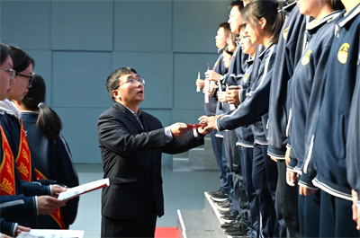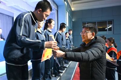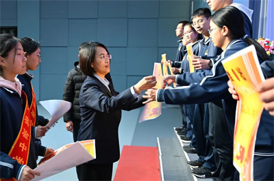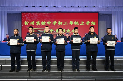 大会庄严而热烈。在过去的半个学期里,初三年级全体学子以智慧为笔,以汗水为墨,在知识的沃土上辛勤耕耘,谱写了昂扬奋进的青春篇章。台上,受奖者意气风发,手中奖状是拼搏最闪亮的注脚;台下,掌声雷动,每一次喝彩都是对奋斗者最真诚的共鸣。 荣耀时刻,化作照亮前路的璀璨星光;殷殷嘱托,凝聚为砥砺前行的磅礴力量。请带上师长的殷切期望、同窗的并肩情谊,以及那个永不认输的自己,用接下来更加刻苦的钻研、更加科学的方法、更加稳定的心态,去迎接每一次日出,去攻克每一个难关,去铸就属于你们每个人生命中最辉煌的胜利!