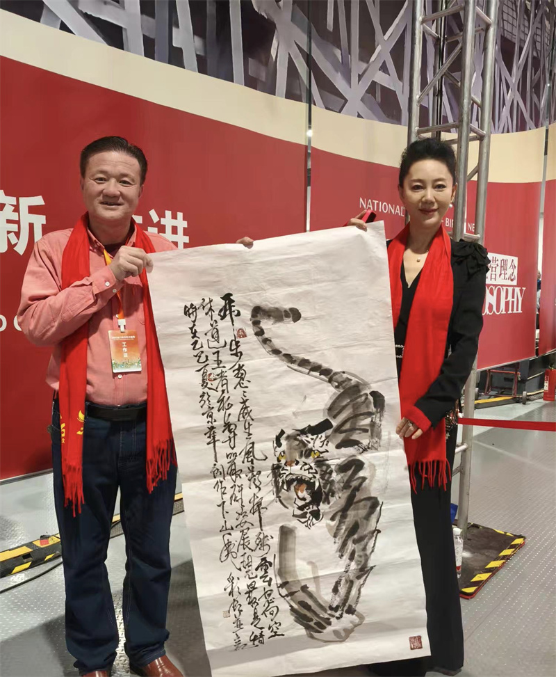 华夏文化促进会书画分会外联部主任常和书,著名演员胡彩虹【右】为此次盛会精心创作的绘画作品