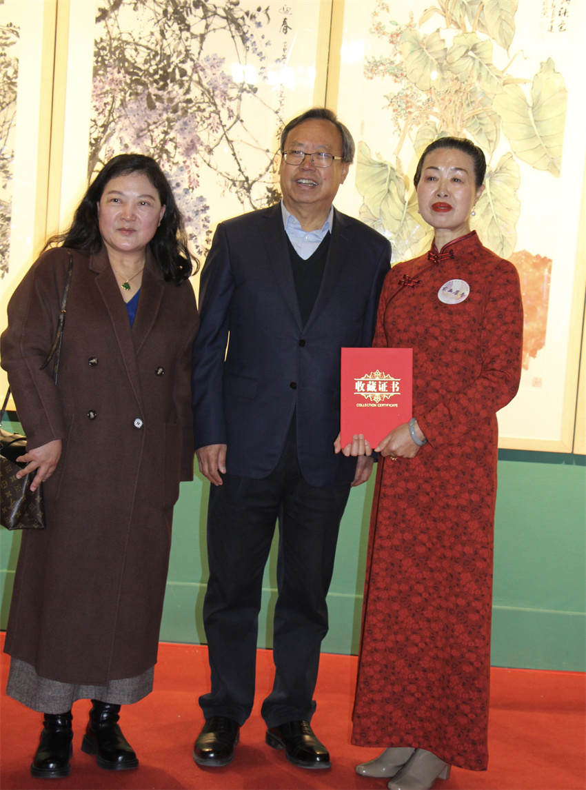 位临今天展会的有中国文联原副主席杨承志,书画频道中国书画艺术研究院院长、中国美术家协会原分党组书记、驻会副主席徐里,中国国家画院原院长卢禹舜,书画频道董事局主席王平,中国女画家协会终身名誉会长、李可染画院副院长孔紫,荣宝斋画院名誉院长、中国画学会副会长唐辉,朝阳区文联常务副主席兼秘书长金童,中国国家画院研究员邢少臣,中国美术家协会理事、中国文联美术艺术中心原副主任梅启林,中国国家画院研究员胡宝利,香港福达(中国)有限公司董事长李绍琳,中国美术家协会综合材料绘画艺委会副主任兼秘书长、李可染画院副院长唐承华,中国山水画研究院院长陈克永,福建援疆漳州分指挥部副指挥长蔡辉兴,中国艺术研究院二级教授、博士生导师唐建,故宫出版社顾问孙刚辉,艺术家:范新国、臧家伟、张泽石、谭晓世、孙恺、阚爱萍、姜伟玲、黄堃宝、许曼、刘金党、杨若云、张延利、周静芳、刘扬、杨步墀、宋学强、郭树刚、张绍安、王丽英、李玉田、李宏业、耿医以及参展艺术家高玉琴,耿炎,蒋仕莲,常杰,孙文美,刘君,袁倩珠,张鸿,宋词等百余位嘉宾出席展览开幕式。