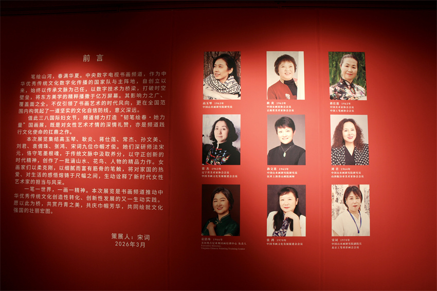 在三八国际妇女节这一特殊的日子里,“韧笔绘春·她力量”国画展在中央数字电视书画频道温情启幕,展览由书画频道主办,书画频道中国书画艺术研究院协办。