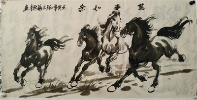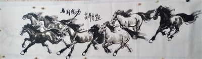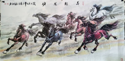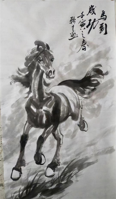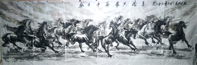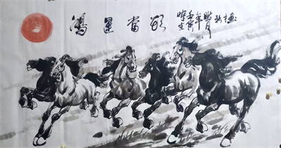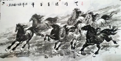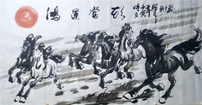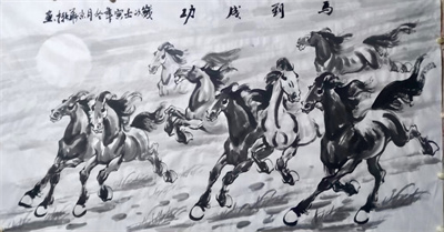 马是中国传统文化里被赋予美好寓意最多的动物,马理所当然地成为古今画家作品题材的最爱,李老师的画面所表现出来的精神、性格、气质,马给给人体现着一种积极向上、奋发图强的正能量,能激发人们的精神斗志。龙马精神、马到成功,天马行空,万马奔腾,老马识途,汗马功劳、兵强马壮,驷马难追,等等。李新才老师多年都在体会画马的艺术规律,逐渐形成了自己的风格特点,也是马的精神令李新才老师一生都在痴迷研究怎样才能把马的神韵体现出来当然喜欢再现马的精气神。