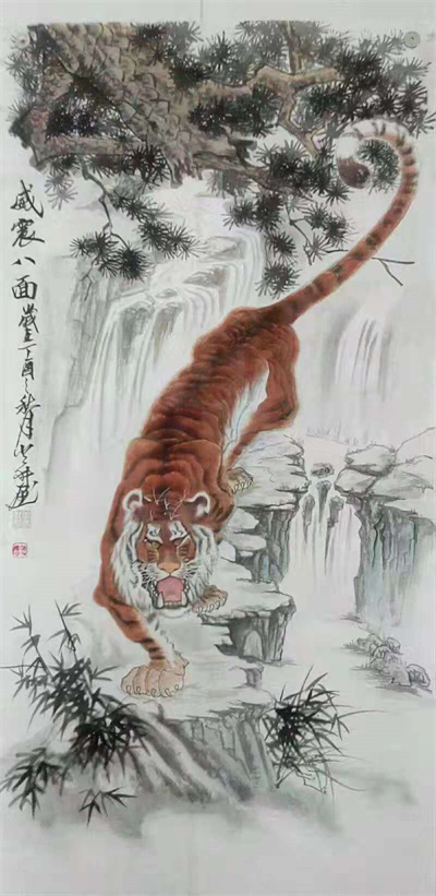 2017年山水画创作一丈二作品《旭日东升》由宋庆龄世界慈善基金会收藏山水画一丈二作品《桂林山水》由泰国领事馆收藏2019年山水画八尺整张中央电视台总台收藏2020年山水画一丈二《长城雄风》国家有关部门收藏2021年山水画一丈二《万里江山千古秀》公安部文联收藏2021年山水画《万里长城》 2022年一丈二《龙腾中华》私人收藏这些年来中央电视台,广东卫视,深圳卫视,宝安数字电视专访,深圳公共频道爱心事迹报道。山水画法传承千年形成了比较固定的范式。如果当代画家能得范式精华,则为传承之功。如果拘泥于范式,虽有传承之功,却生画匠之风,清初四王既是此证。如何继承范式却又能脱得出来,这是当代画家需要致力实践的重要课题。有些遗憾的是,当下一些画家在传承与创新的探索方向上是持迷茫状态的,不知法从何来,也不知法向何处,造成了当代山水画传承无能,进取无力的尴尬状态。
