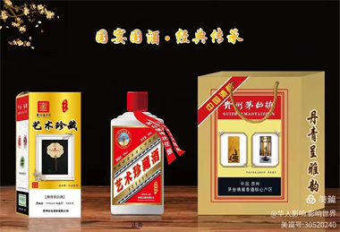 酒,作为一种特殊的文化载体,在人类交往中占有独特的地位。贵州茅台镇酱香白酒是蒸馏酒,产于中国贵州茅台镇,以本地优质高粱、小麦、水为原料。利用得天独厚的自然环境,采用科学独特的传统工艺精细酿制而成,未添加任何香气香味物质,从生产贮存经历五年以上,具有酱香突出,幽雅细腻、酒体醇厚回味悠长空杯持久的特点。“贵州茅台镇艺术酒”,是中国酱香白酒核心产区--贵州茅台镇出品。秉承传统酱香白酒的经典酿造技艺,以名家书画作品为设计元素,推出的系列产品,是中国现代白酒文化和传统文化的完美结合,具有特殊的艺术品位和收藏价值。是您宴客、品饮、收藏、礼赠之佳品,陈之于酒柜,不但保值升值,还可彰显厚重的文化艺术气息!