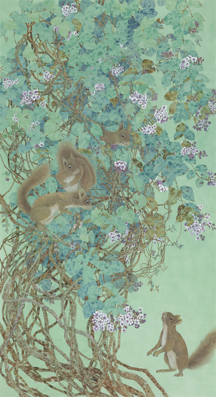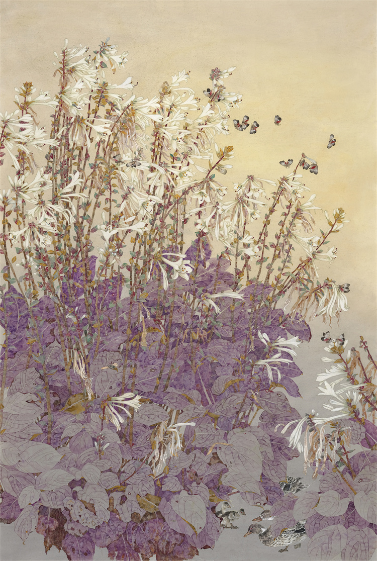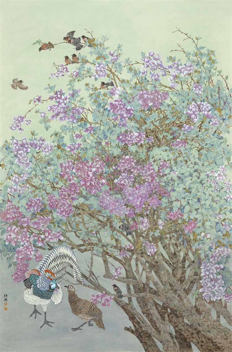 早年,李仕英深植于传统花鸟画的土壤之中,对宋元以来的名家之作进行深入学习,如工笔花鸟的细腻入微、写意花鸟的洒脱不羁,都力求掌握其精髓,通过不懈的努力,不仅在技法上达到了炉火纯青的境界,更在创作中融入了对自然生命的深刻理解与感悟。