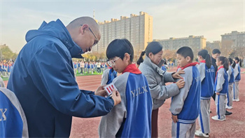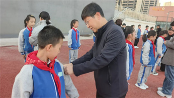 在热烈的掌声中,学校少工委副主任、副校长张强发表了热情洋溢的讲话。他首先向新当选的大队委表示热烈的祝贺,并寄语全体队委:“一条杠杠代表一份责任。希望新一届大队委们能以身作则,当好同学们的‘排头兵’和‘服务者’,用勤奋的努力换取优异的成绩,用热情的服务赢得同学的信任,用出色的工作回报老师的嘱托,努力成长为有担当、有作为的新时代好少年。”