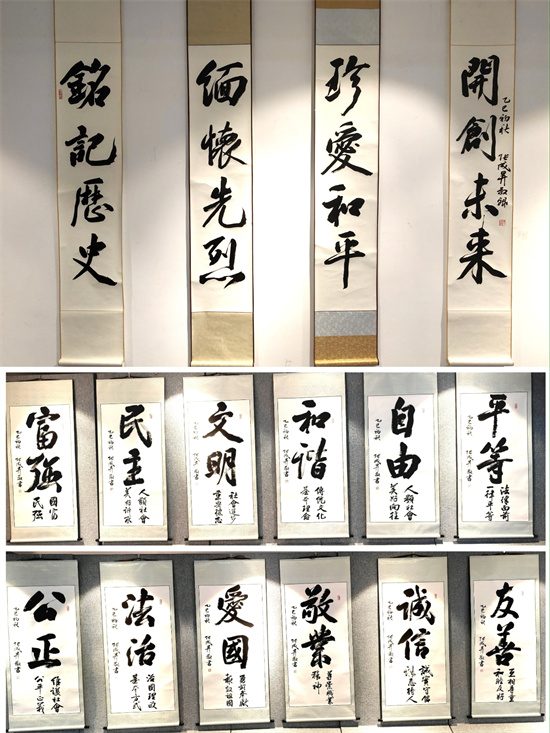 校党委书记丁宏和书展作者张成生分别致辞。丁宏表示,历史是最好的教科书,也是最好的清醒剂。唯有铭记苦难辉煌,方能扛起复兴重任。作为扎根黑土地、传承武装抗日第一枪历史、肩负文化自信自强重任的综合性大学,我们在这个庄严的日子举办红色主题书法展,旨在通过艺术的视角重述抗战史诗、诠释抗战精神,让师生们在欣赏艺术之美、文化之韵的同时,重温民族记忆、缅怀革命先烈、砥砺家国情怀,这不仅是一次不忘来路的深情回望,更是一次启迪未来的郑重前瞻。希望本次展览能够以生动的文化实践,为师生上一堂触及灵魂的“大思政课”,在历史教育和精神洗礼中,以文化铸魂,以行动践行,在传承中寻求突破,在奋斗中实现成长,努力成为优秀的文化传承者和合格的时代答卷人。张成生表示,书法是感悟历史、传承精神的桥梁,以艺术的方式重温历史,就是要从伟大的抗战精神中汲取奋进力量,铭记历史、缅怀先烈、珍爱和平、开创未来。希望通过这些作品,能让每一位驻足观看的朋友,尤其是青年一代,直观地触摸到历史的脉搏,感受到先烈的温度,从而更加深刻地理解今日和平与繁荣的来之不易,传承红色基因、赓续红色血脉。
