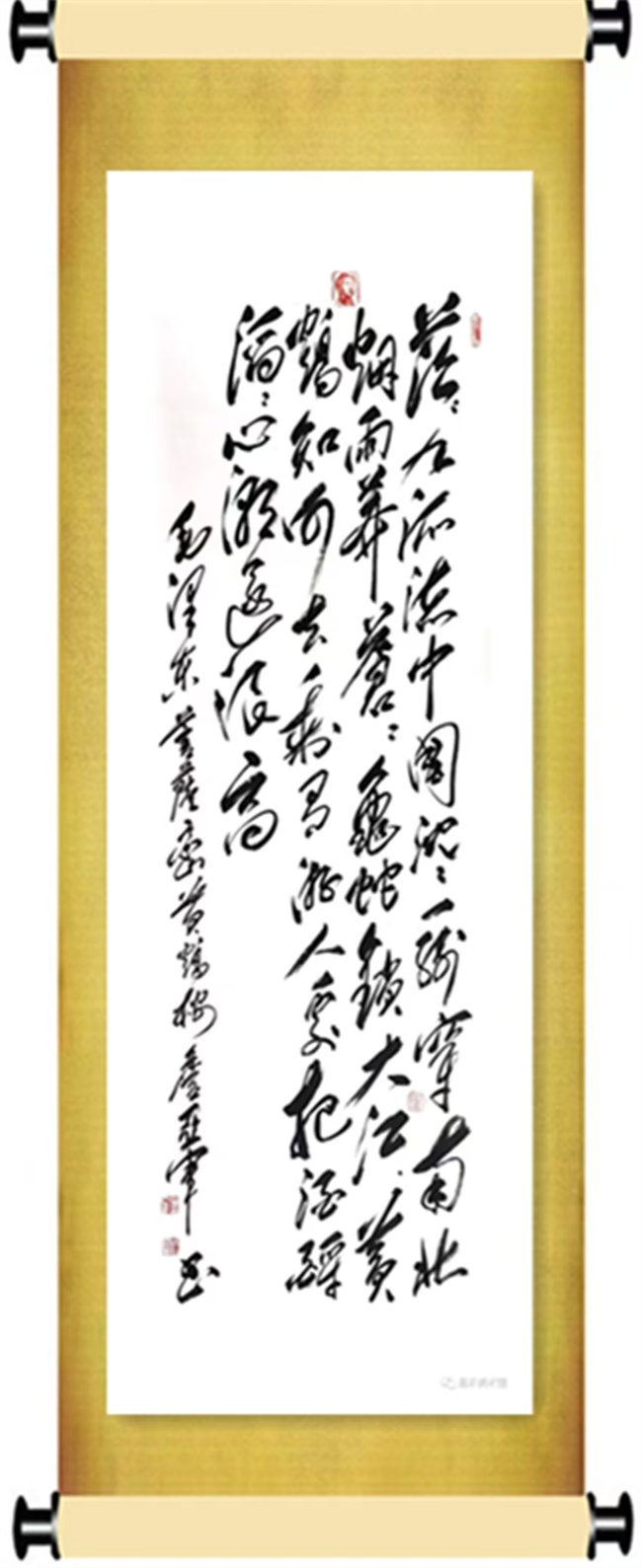 詹亚军聊起练字时的细节,眼里满是光芒。为了精准把握毛泽东书法中“狂放不失法度,潇洒蕴含风骨”的特点,曾走遍大江南北,搜集不同时期的毛体真迹照片与拓本,逐字拆解笔画结构,甚至对着史料揣摩毛泽东同志创作时的时代背景与心境。“毛体不是简单的模仿,它的魂在‘气’里。”先生举起筷子,在空中比划着,“你看‘数风流人物,还看今朝’这一句,每个字都像有力量在涌动,那是对国家、对民族的豪情,要是没读懂这份情怀,写出来的字就是空架子。”