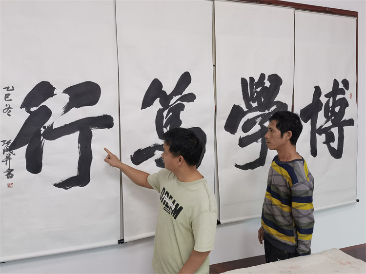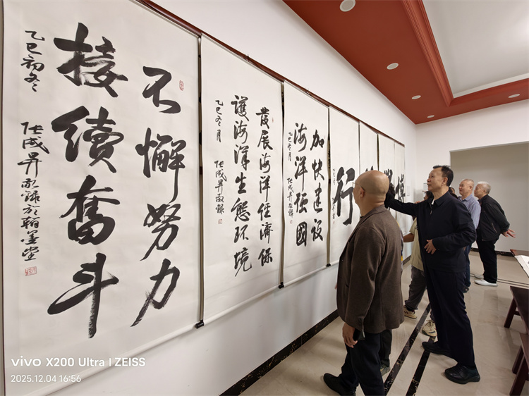 主办方介绍,书展创作者张成生以其深厚的书法造诣和饱满的政治热情,用笔墨记录时代强音,诠释发展理念。本次沙扒镇书法展的成功举办,是艺术服务大局、文化赋能发展的有益尝试,为推动党的创新理论“飞入寻常百姓家”,促进海洋经济主题宣传与地方文化特色深度融合提供了新颖而有力的借鉴。