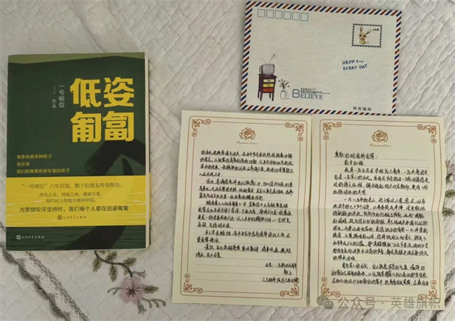 你送来的《低姿匍匐》,我已经收好。找机会和身边的战友一起,在扉页为你写下寄语。这不仅是嘱托,更是把精神的火炬交到你们这代人手上,愿你们记得来路的艰辛,带着英雄的信念,在青春的路上笃定前行,把这份忠诚与担当传承下去。