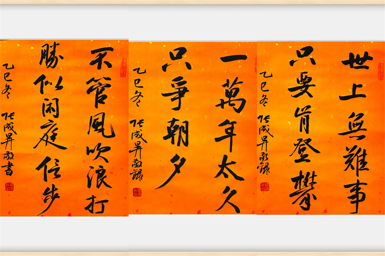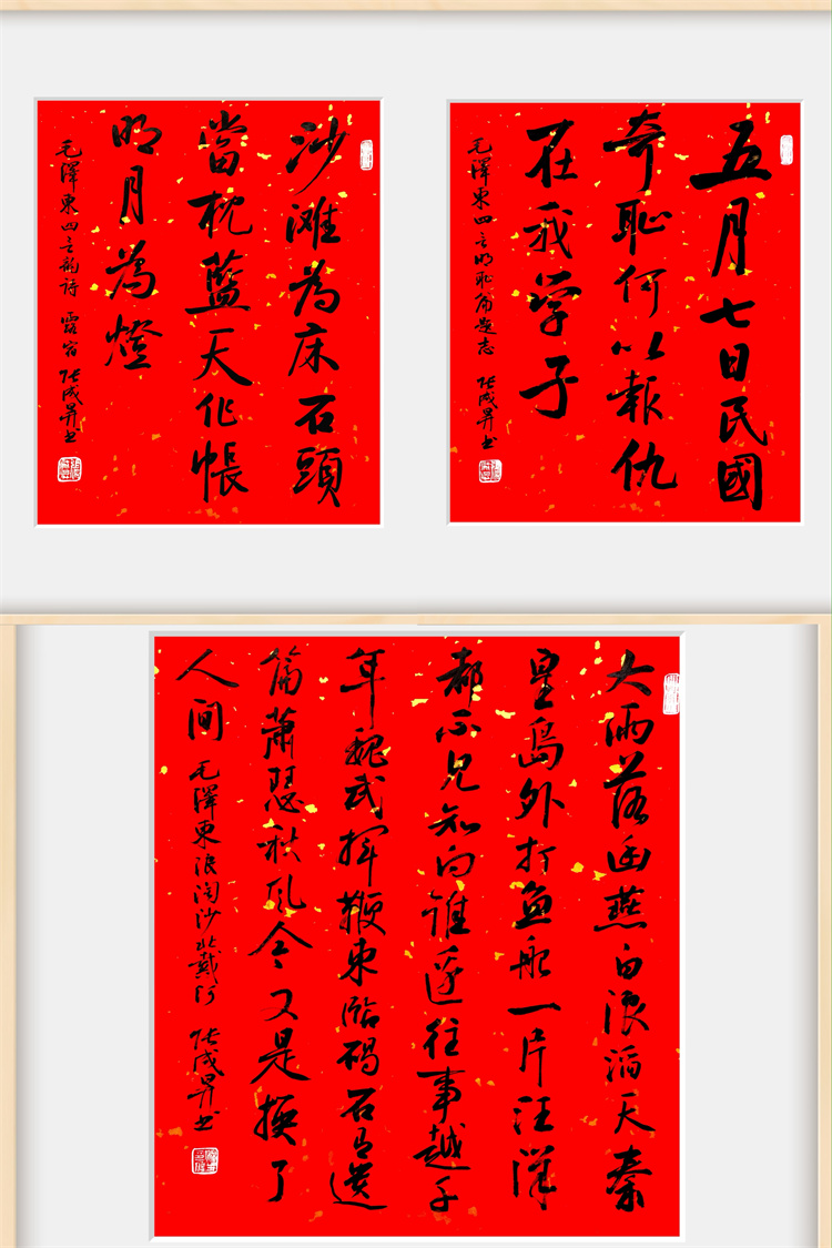 多年来,书法家张成生坚持在毛主席诞辰之际以笔墨抒怀。此次展览筹备期间,他专程带着书写的毛主席诗词走访茅坪旧居、龙江书院等红色旧址,在历史的现场感受峥嵘岁月。“茅坪的灯光照亮了中国革命的道路”,站在八角楼下,他凝望着那盏只点一根灯芯的油灯,心潮难平,“在这里书写,每一笔都带着敬仰,每一字都融着体悟。”行至龙江书院——红军教导队的摇篮,他驻足沉思,更觉“红军不怕远征难”的豪情与井冈山精神血脉相连,也为自身多年的创作注入了磅礴气韵。