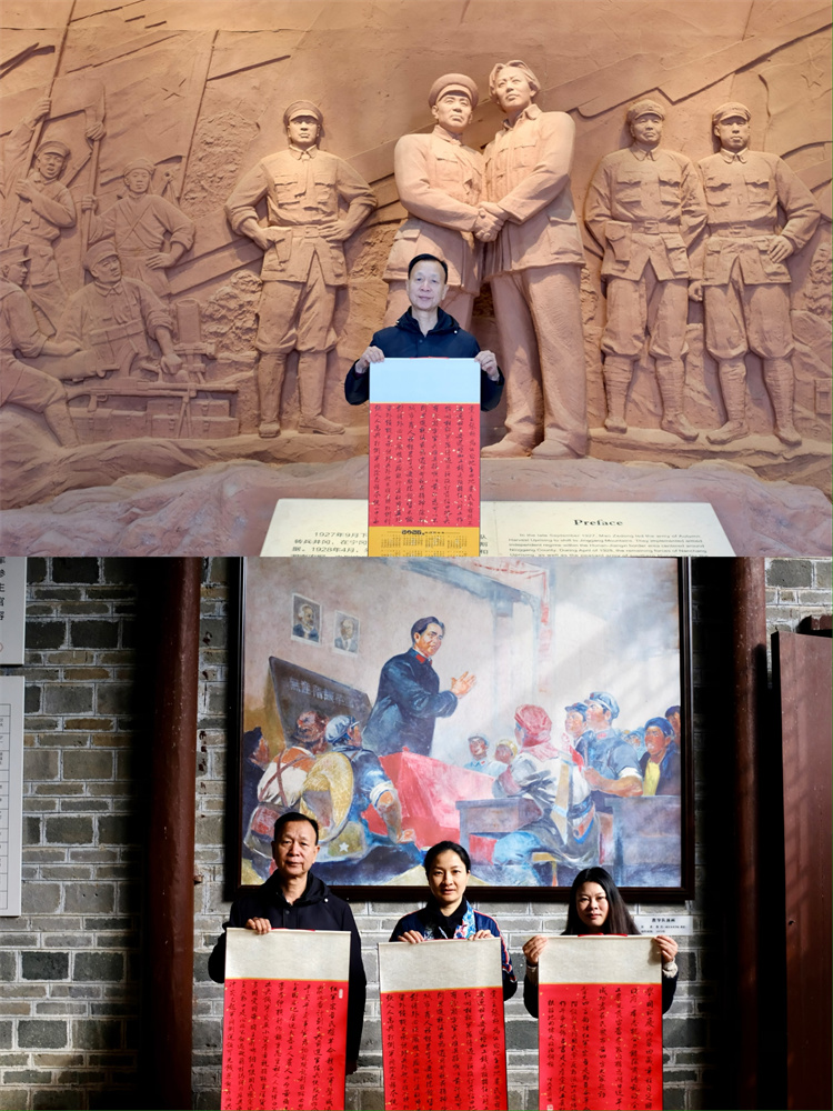展览现场庄重而热烈。当地的一名党员干部表示:“在笔墨中重读毛主席诗词,仿佛回到那段风雨兼程的岁月,既领略了书法之美,更触摸到伟人胸怀。”年轻游客刘女士感慨:“这样的展览让红色文化可亲可感,从举办方介绍时知晓作者十余年如一日的坚守,也让井冈山精神在当下依然鲜活。”许多参观者表示,这是一次深刻的精神洗礼,在艺术熏陶中进一步坚定了理想信念。
